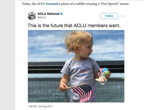 Today, the ACLU tweeted a photo of a toddler wearing a “Free Speech” onesie: