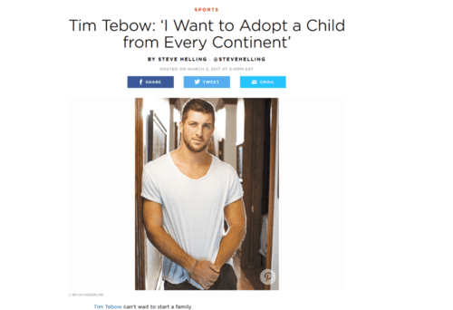 Begging pardon, but Tebow sounds here more like a Roman emperor looking for decorative proof of world conquest than a humble Christian seeking a righteous life. Human beings aren't collector's items.