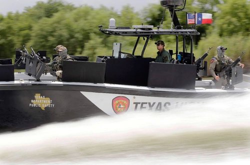 Armed Texas Border Patrol Boat Patrolling The Rio Grander