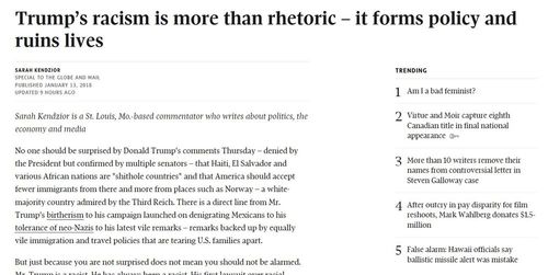 Trump’s racism is more than rhetoric – it forms policy and ruins livesCommenter Jus’ Sayin’ adds:SARAH KENDZIOR