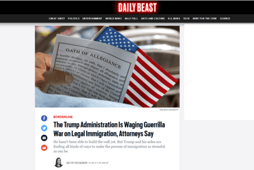 [The Trump Administration Is Waging Guerrilla War on Legal Immigration, Attorneys Say, by Betsy Woodruff, The Daily Beast, December 26, 2017]