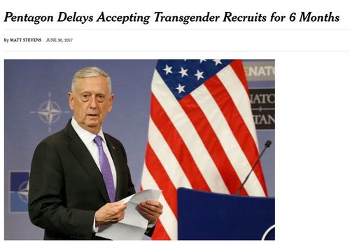 Pentagon Delays Accepting Transgender Recruits for 6 Months[Comment at Unz.com]By MATT STEVENS JUNE 30, 2017