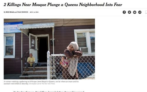 2 Killings Near Mosque Plunge a Queens Neighborhood Into FearOops …By RICK ROJAS and NOAH REMNICK AUG. 14, 2016