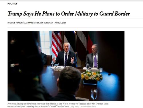 Trump Says He Plans To Order Military To Guard Border, By Julie Hirschfeld Davis And Eileen Sullivan, April 3, 2018