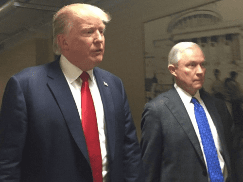The two met on the Capitol steps and walked inside for a confidential, unannounced meeting. Donald Trump Huddles With Jeff Sessions To Push Immigration Reform by Julia Hahn Breitbart.com 9 Sep 2015