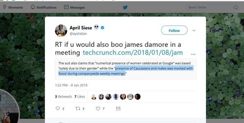 James Damore's account is here. Note that we have, below, not only a tag for Google Diversity Memo Firing, but a more general tag headed White Guy Loses His Job—a phenomenon we've been covering for years.