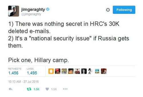On a another topic, I’d hardly be surprised if the Russian government had some kind of role in publishing the DNC emails. It’s kind of a tradition in Russian history to publish to the world foreign leaders’ secret documents. One of the first things Lenin and Trotsky did when the Bolsheviks came to power in 1917 was to publish the Czarist government’s secret diplomatic files, which caused much embarrassment to Russia’s ex-allies, France and Britain, when their plans for divvying up the spoils of war were revealed. I don’t have any proof who was behind recent releases of phone calls by American diplomat Victoria Nuland on Ukraine and Anne Applebaum’s husband, the then foreign minister of Poland, but they would fit within this tradition.