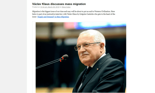 Václav Klaus discusses mass migration, Catallaxy Files, March 28, 2018Grégoire Canlorbe: People are often defined by a common worldview rather than by genetics or where they live. In view of the situation in the Czech Republic, do you agree?