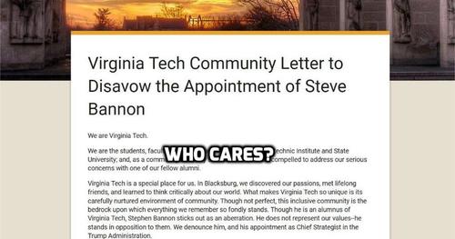 It also contains about 4,600 signatures. Given the tens of thousands of Tech grads who have passed through the school since Bannon's days in 1970s, they hardly represent Tech's "community."