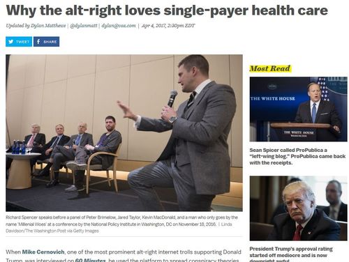 As VOX notes, an increasing number of people on the Alt Right are supporting single payer. But the main obstacle is the existing Republican Party.