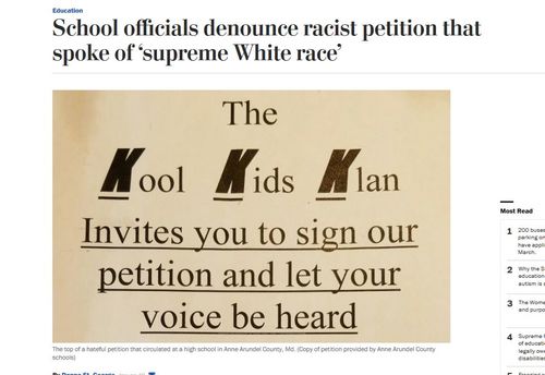 This account used similar language to a racial petition that had been passed around Anne Arundel High School by the “Kool Kids Klan”.