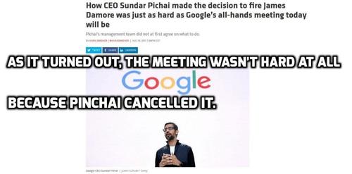 From Recode, the first purportedly inside account of who was behind firing coder James Damore for crimethink: