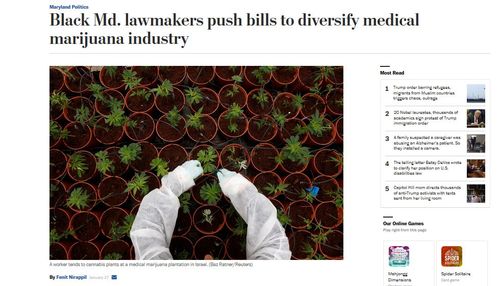 Black Md. lawmakers push bills to diversify medical marijuana industryOne commenter here regularly suggests that just as American Indians get casinos as a kind of reparations, American blacks should get the legal marijuana business.By Fenit Nirappil January 27 at 6:07 PM