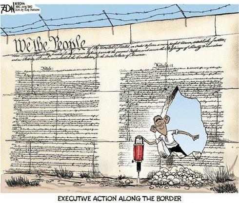 Republicans’ failure to address immigration also does not justify Mr. Obama’s massive unilateral act. Unlike Mr. Bush in 1990, whose much more modest order was in step with legislation recently and subsequently enacted by Congress, Mr. Obama’s move flies in the face of congressional intent — no matter how indefensible that intent looks.What an amazing situation this is. Last weekend we had Meet The Press pointing out that there could be electoral advantage to the Republicans in opposing Obama’s coup d’état and now here is the Washington Post, the Capital’s lead newspaper which did more than any other to bring President Nixon down over Watergate – and which has certainly not got any less liberal since then – saying Obama’s action is unprecedented and not justified.
