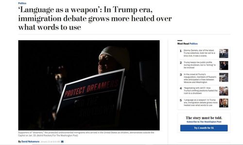 ‘Language as a weapon’: In Trump era, immigration debate grows more heated over what words to useThose are old, straight-forward terms for the realities they are describing.By David Nakamura January 21 at 9:14 AM