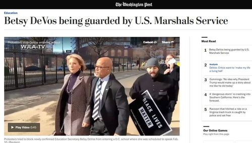 Betsy DeVos being guarded by U.S. Marshals ServiceBy Danielle Douglas-Gabriel and Emma Brown, Washington Post, February 17, 2017