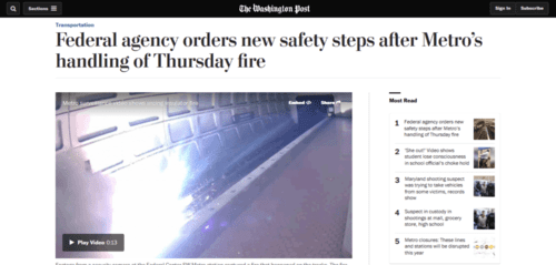 Metro threatened with shutdown unless ‘urgent action’ is takenFrom the Washington Times in March 2012:Citing a botched response to a fire on Thursday, the Federal Transit Administration issued a series of emergency directives and threatened to shut down all or parts of the nation’s second-busiest subway.
