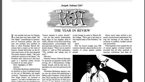 It’s called 2007/The Year in Review, by Joseph Sobran, The American Spectator, December 1987