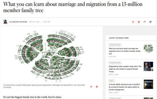 A study describing the tree, published this week in Science, also details some of what we can learn from this crowdsourced data. For example, it reveals when people stopped marrying their cousins, whether men or women traveled farther from home for marriage, and provides clues about how longevity is inherited. …