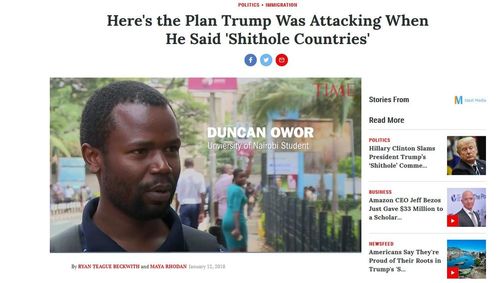 Here’s the Plan Trump Was Attacking When He Said ‘Shithole Countries’By RYAN TEAGUE BECKWITH and MAYA RHODAN 12:57 PM EST