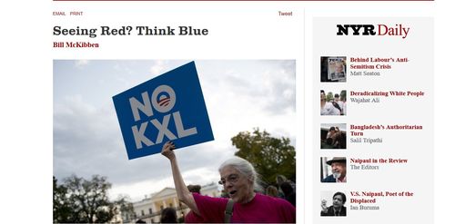 In the New York Review of Books, white environmentalist Bill McKibben realizes that the Democratic Party is not interested in conserving guys like him, and thinks that — environment be damned — is sort of great: