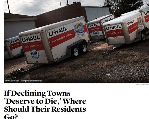 If Declining Towns ‘Deserve to Die,’ Where Should Their Residents Go?I did a text search but didn’t see the words “immigration” or “immigrant” in this Atlantic article, even though the huge rise in immigration obviously plays a role in the decline in internal migration by American citizens. If somebody is coming from abroad to make use of America, they are likely to move to a location in America with a booming economy. Thus, the flow of immigrants to American boomtowns drive down wages and drive up rents, making moving to boomtowns less economically rewarding for Americans.Some economists and pundits claim Americans aren’t moving enough, but how people should respond to that is unclear.