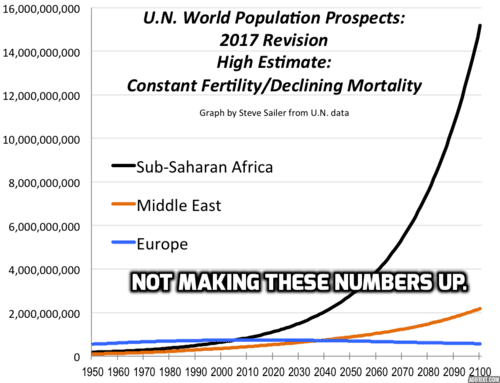 Fifteen billion Sub-Saharans is really not likely to happen, but my main point is: I’m not making these numbers up. These all come from the United Nations, not me.