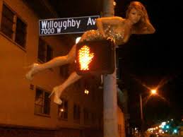 | No Pole Left Behind: The demure V Stiviano showing off her skills |