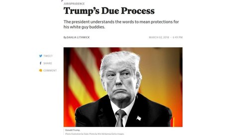Today, this is the headline: “Trump’s Due Process—The president understands the words to mean protections for his white guy buddies.” [By Dahlia Lithwick, March 5, 2018] You needn’t read the piece. It’s the usual.
