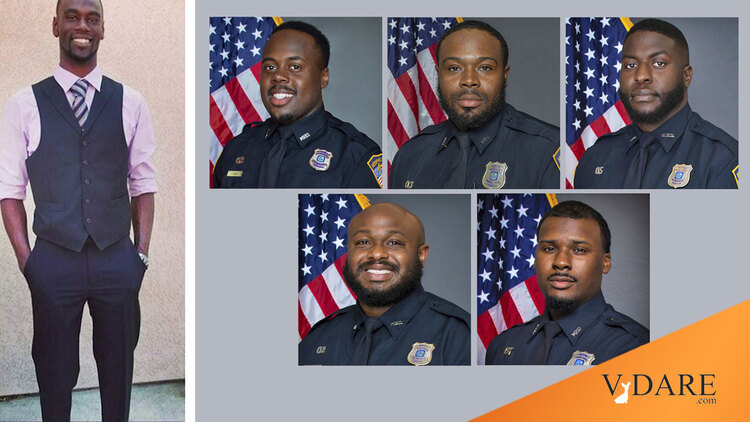 You know and I know that all five Memphis cops charged with second-degree murder in beating poor Mr. Nichols to death are black, but do Washington Post subscribers want to be reminded of that awkward fact? Apparently not, as the WaPo avoids mentioning that, or that the MPD is majority black, throughout its 17-paragraph news article.