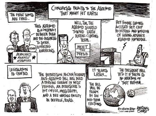 To such ends, a favorite tactic of many politicians is breast-beating and obfuscation until they've run the clock out, as parodied in the cartoon from 2002 displayed below.
