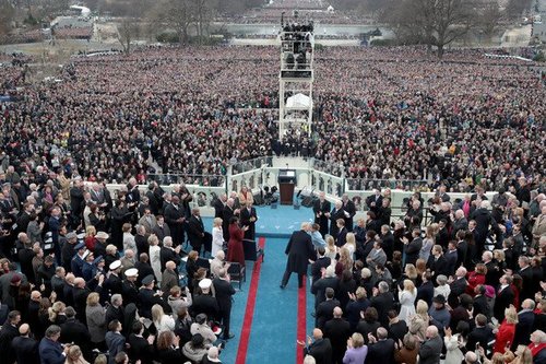 The content of the ceremony was straightforward and direct in the good American manner, with a minimum of unnecessary wordage. The ceremonial deism was perhaps a little over the top for the quarter of us who are now unbelievers; but the new President seems sincere in his faith, and it was his show, so we shouldn't complain. Besides, we got a smile out of it. The quick-witted Rev. Franklin Graham noted that it started to rain just as Donald Trump stepped to the podium. "In the Bible," said Rev. Graham, "rain is the sign of God's blessing." That was very nicely done, whatever your metaphysics may be.