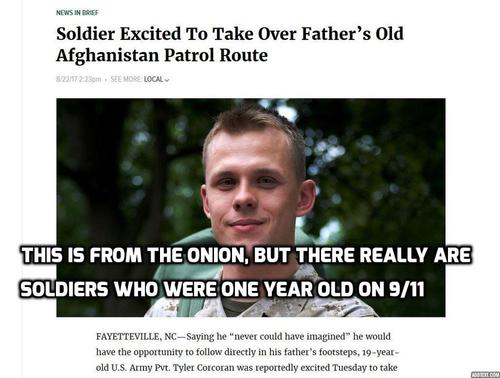This is Year Eighteen of our Afghanistan effort. True, we're not actually engaged in combat there now, except I suppose covertly; but we have guys out there doing training and support, and we've had a fatality from hostile fire already this year: Sergeant Mihail Golin of Fort Lee, New Jersey, killed January 1st in Nangarhar Province. Sincere condolences from Radio Derb to Sgt. Golin's family and friends.That follows fifteen American fatalities in 2017, eleven of them from hostile fire, three of them "green on blue" — that is, our guys were killed by the Afghan Army troops they were training and supporting.