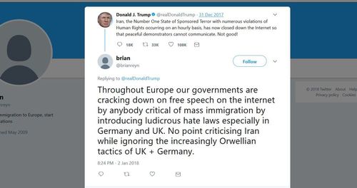 Germany has begun enforcing a new law which imposes fines of up to 50 million euros for each incident of so-called hate speech online [Brand-New Online ‘Hate-Speech’ Law Snares 1st Victim, WND, January 2, 2018]. By “hate speech,” of course, we mean any expression of opposition to immigration, Islamization, or the European Union.
