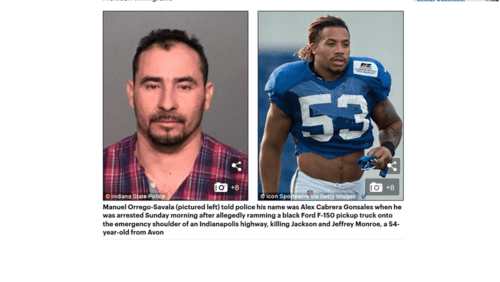 On the very day of the Super Bowl, an NFL player, Indianapolis Colts linebacker Edwin Jackson, was killed in a drunk driving accident, allegedly by an illegal immigrant. The alleged killer, one Manuel Orrego-Savala, is a twice-deported illegal who was using a phony name to remain in the country. He also attempted to flee the scene. He had a blood alcohol level of twice the legal limit.